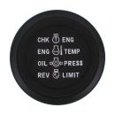 Veethree Premie Pro Line Imfri instrumentserie. Svart ytterring. Vita siffror och vit nivåmarkering på svart botten. Visarnålen är vit med ett svart centrum. Låg profilram som följer instrumentets glas för att eliminera att vatten ligger kvar på kanten. Glaset är repfritt och samtliga instrument levereras med belysning för bästa möjliga nattavläsning. Instrumenten är imfria.