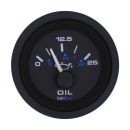 Veethree Premie Pro Line Imfri instrumentserie. Svart ytterring. Vita siffror och vit nivåmarkering på svart botten. Visarnålen är vit med ett svart centrum. Låg profilram som följer instrumentets glas för att eliminera att vatten ligger kvar på kanten. Glaset är repfritt och samtliga instrument levereras med belysning för bästa möjliga nattavläsning. Instrumenten är imfria.