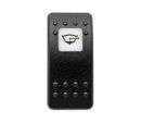 Sort hætte Contura II med lystransmission og symbol for Carling kontakt. Fås i flere versioner med forskellige symboler. Monteres nemt ved blot at trykke den på plads, og det er også nemt at skifte emhætten, hvis det er nødvendigt.