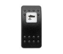 Sort hætte Contura II med lystransmission og symbol for Carling kontakt. Fås i flere versioner med forskellige symboler. Monteres nemt ved blot at trykke den på plads, og det er også nemt at skifte emhætten, hvis det er nødvendigt.