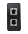 Svart huv Contura II med två ljusgenomsläpp och riktningssymboler till Carling strömbrytare. Monteras enkelt genom att endast tryckas på plats samt är även enkelt att byta huv vid behov.