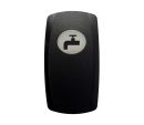 Sort hætte Contura V med lystransmission og symbol for Carling kontakt. Fås i flere versioner med forskellige symboler. Monteres nemt ved blot at trykke den på plads, og det er også nemt at skifte emhætten, hvis det er nødvendigt.