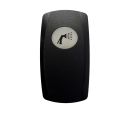 Sort hætte Contura V med lystransmission og symbol for Carling kontakt. Fås i flere versioner med forskellige symboler. Monteres nemt ved blot at trykke den på plads, og det er også nemt at skifte emhætten, hvis det er nødvendigt.