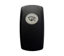 Sort hætte Contura V med lystransmission og symbol for Carling kontakt. Fås i flere versioner med forskellige symboler. Monteres nemt ved blot at trykke den på plads, og det er også nemt at skifte emhætten, hvis det er nødvendigt.