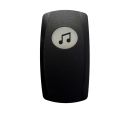 Sort hætte Contura V med lystransmission og symbol for Carling kontakt. Fås i flere versioner med forskellige symboler. Monteres nemt ved blot at trykke den på plads, og det er også nemt at skifte emhætten, hvis det er nødvendigt.