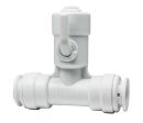 T-koppling med två anslutningar för 15mm rör/slang och en med backventil samt avstängningsventil för 1/4″ slang. Avstängningen skall enbart användas fullt stängd eller fullt öppen, skall inte användas för att reglera flöde.