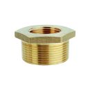 Förminskningsnippel i mässing med invändig och utvändig gänga.