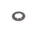 Låsbricka för genomgående axel i bas på frontmonterade elmotorer.